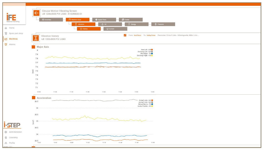 The i-STEP Operator uses sensors from IFE and compatible third-party sensors to continuously collect relevant machine data. This data is automatically transferred to a user-friendly interface, where it is clearly structured and visually presented. It provides operations managers with a comprehensive overview of the condition of their machines — without having to be on site in person. If deviations occur, the recorded telemetry data can be shared directly with IFE.