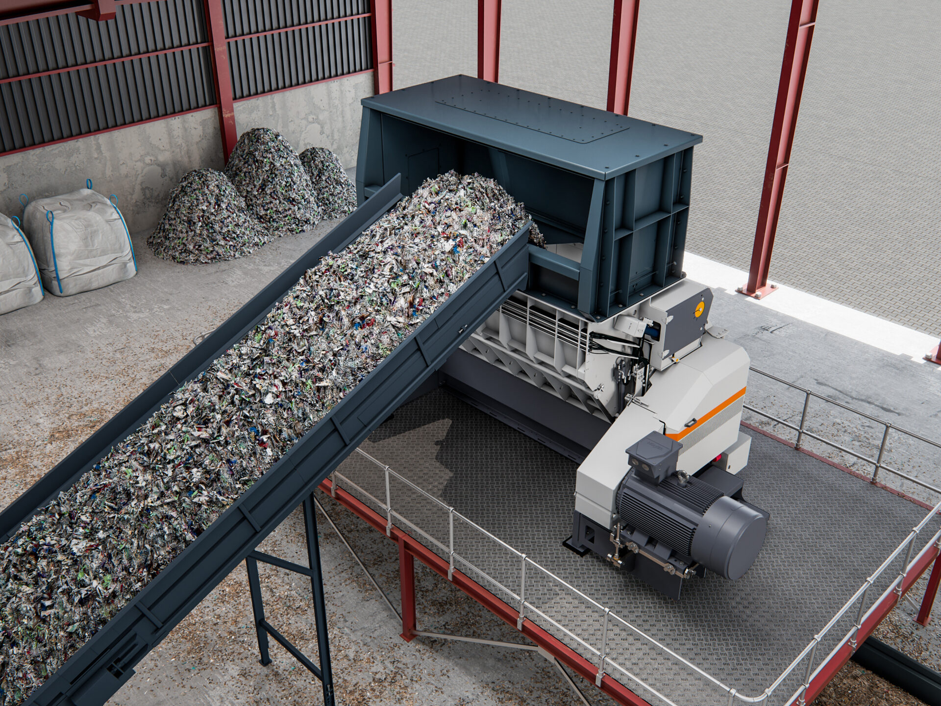 Home > Technology Zones > Size Reduction > M&J Recycling Raises the Bar for Secondary Waste Shredding Performance > F320_E-Drive_Building_A06_building_waste