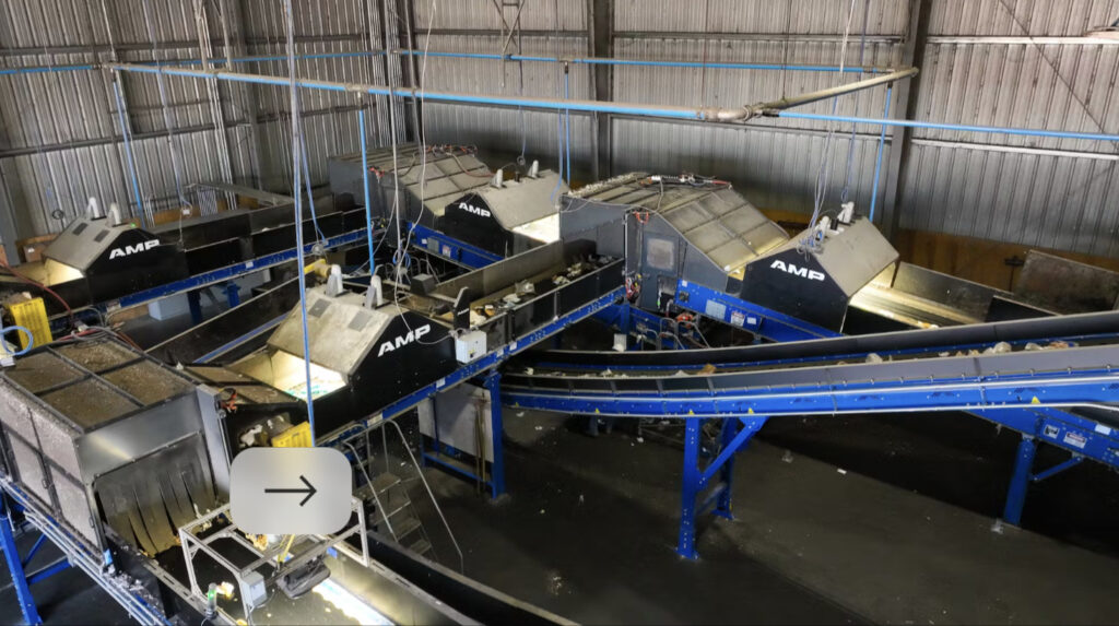 AMP’s system accepts raw municipal solid waste, including sealed trash bags, rather than pre-separated recyclable streams. Every piece of waste entering the system is analyzed through AMP’s AMP ONE platform, which separates material into individual recyclable commodity streams. Organic material is converted into biochar through a pyrolysis process, and only residue is returned to SPSA’s landfill — dramatically reducing the volume of material that requires disposal.