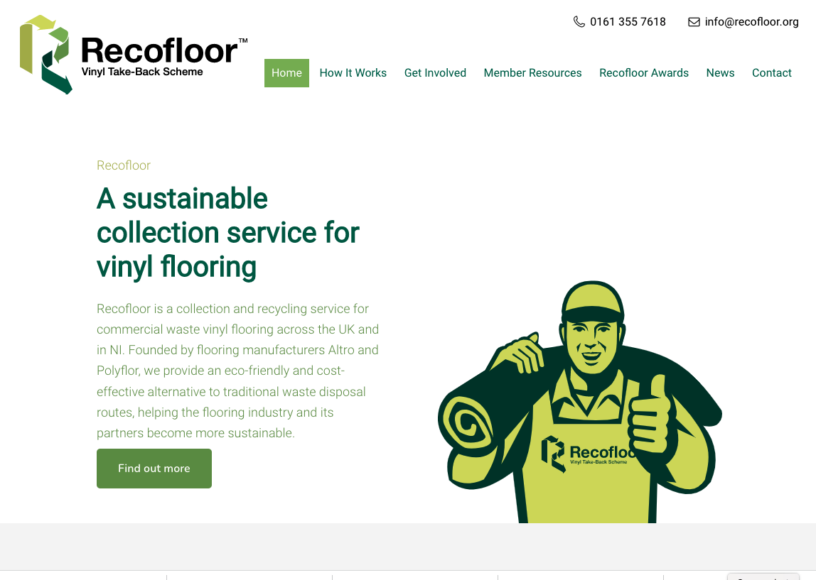 “We’ve introduced, for example, a specific member resources section grouping together all the information members might be looking for. This section makes it easy for members to find forms to order bins, bags, and collections and to check operational details such as material specifications. There’s also a Book a Visit or trade event page for members wanting us to visit their premises to introduce or promote the scheme. On top of this, we’ve added handy hints on topics such as how to care for Recofloor bins and pack roll-ends.”