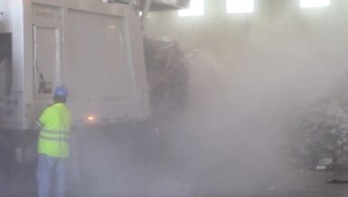 - Compressed Air Dust Suppression (MB-PLV-10): In situations where water usage must be minimized, or where low temperatures make water impractical, the compressed air system provides an excellent alternative. Commonly used for direct dust suppression in indoor recycling plants, it employs compressed air to create an ultra-fine mist, allowing dust control to occur close to the machine itself.